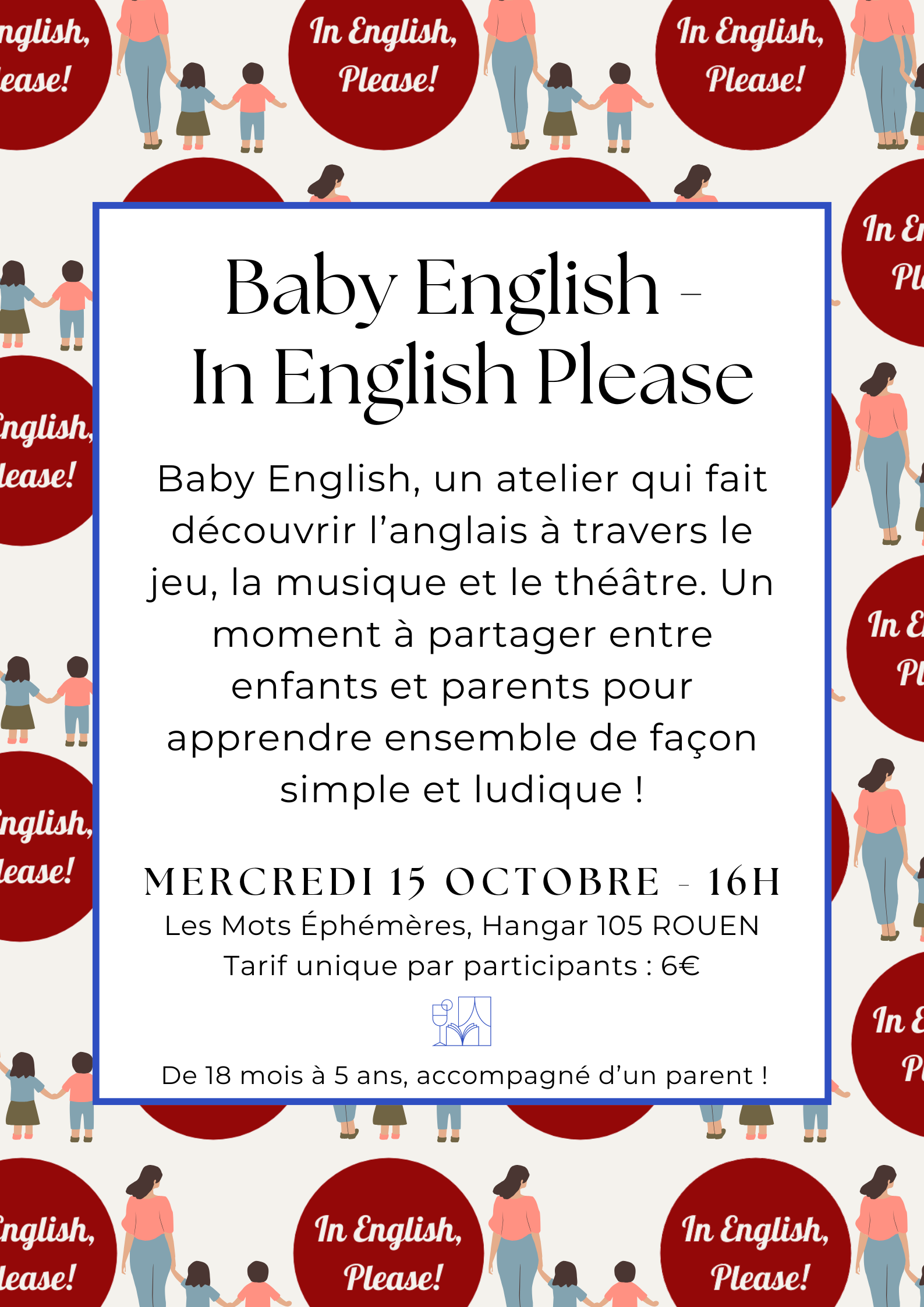Avec Baby English, la découverte de l’anglais commence dès le plus jeune âge, entre 18 mois et 5 ans, dans un cadre ludique et convivial. Porté par la compagnie In English Please, cet atelier met en avant le jeu, la musique et le théâtre pour initier les enfants aux sonorités de la langue anglaise. Une marionnette attachante, des chansons, de petites histoires et des jeux interactifs permettent aux enfants de comprendre et de participer, même sans connaissances préalables, tout en s’amusant !