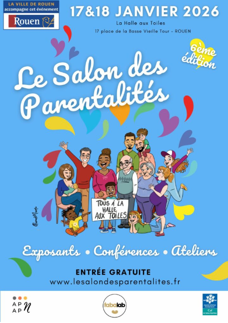 La 6 ème édition du Salon des Parentalités aura lieu les samedi 17 janvier et dimanche 18 janvier 2026 à la Halle aux Toiles de Rouen !