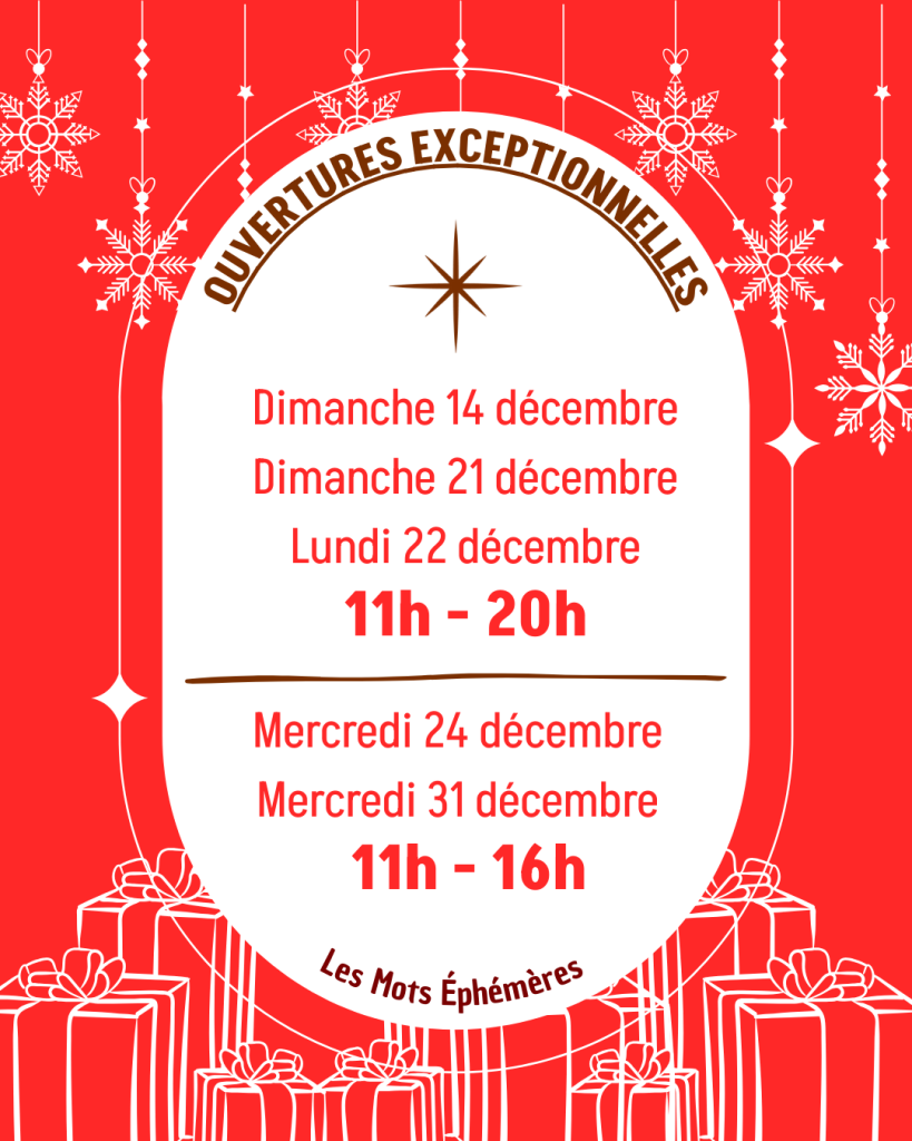 À l’occasion des fêtes de fin d’année nous avons le plaisir de vous acceuillir : Dimanche 14 décembre de 11h à 20h Dimanche 21 décembre de 11h à 20h Lundi […]